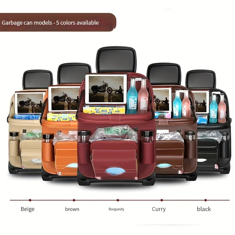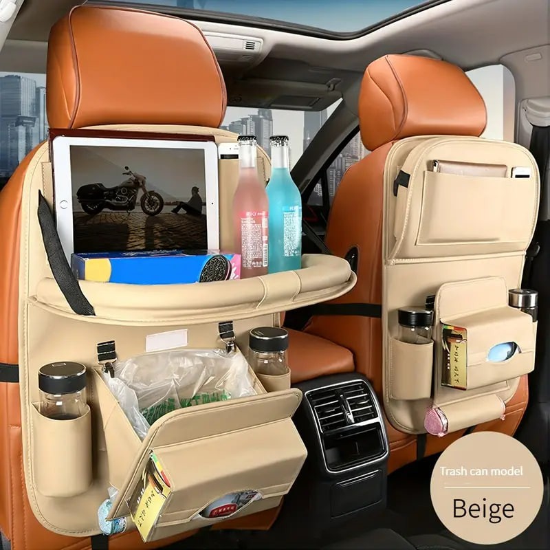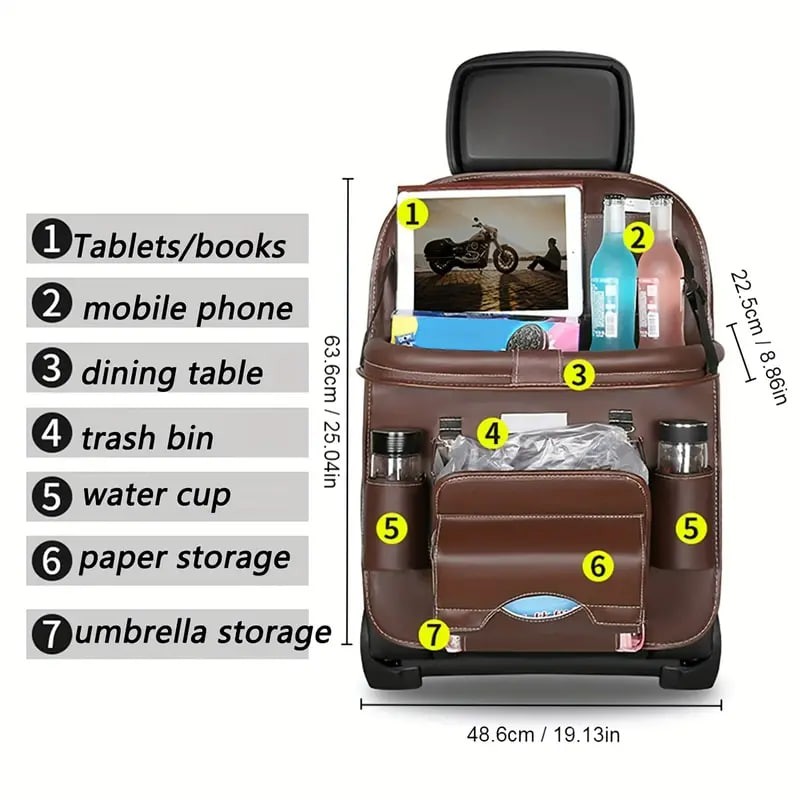 1pc Car Seat Back Faux Leather Luxury Storage Bag With Dining Tray Tissue Box Garbage Bag Hanging Bag Rear Seat Back Storage Bag