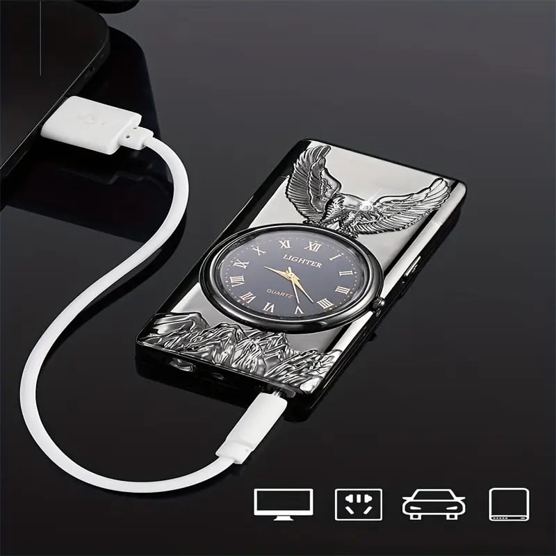 1pc Double Arc Lighter Embossed Eagle Cool Real Dial LED Lighting Charging Igniter
