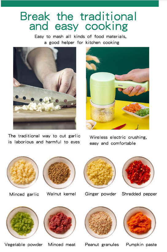 3-in-1 Electric Wireless Chopper - Handheld Food Processor - Egg Beater Blender