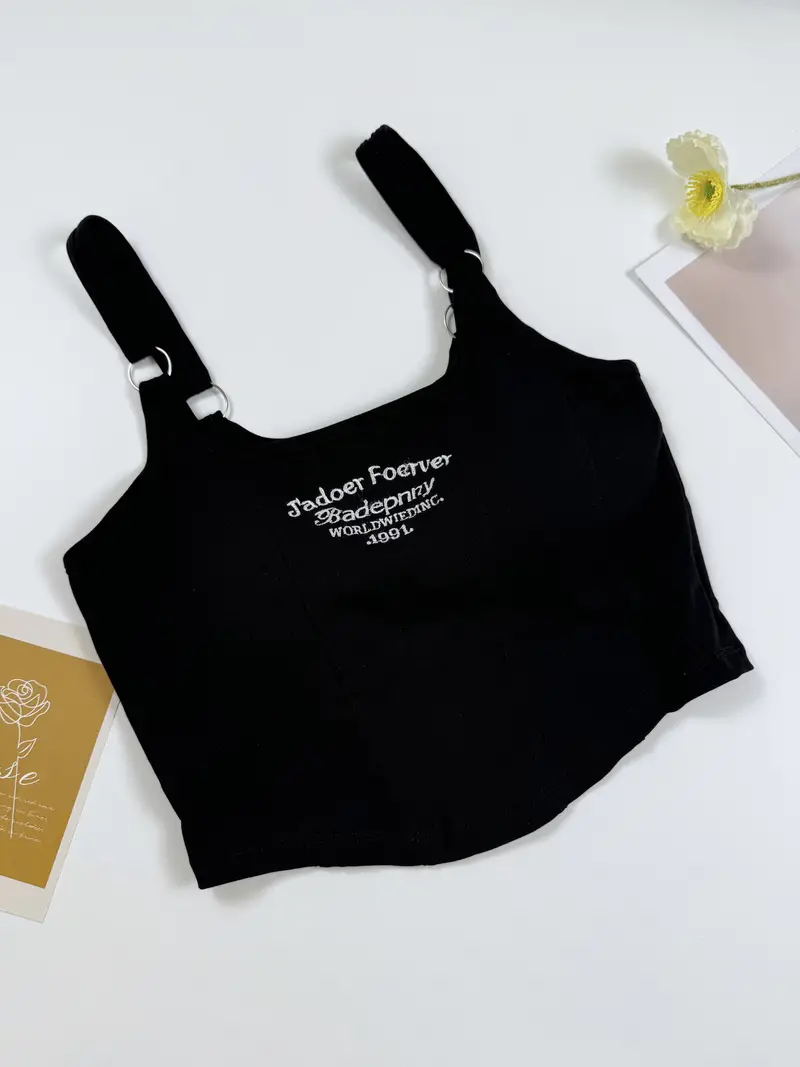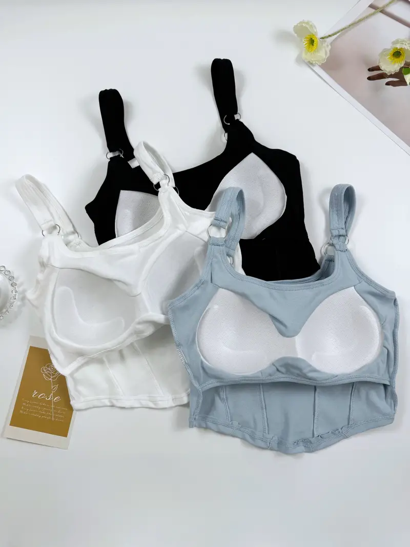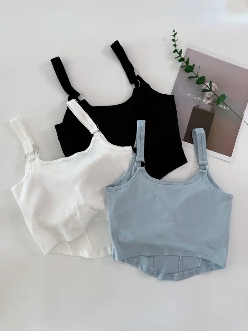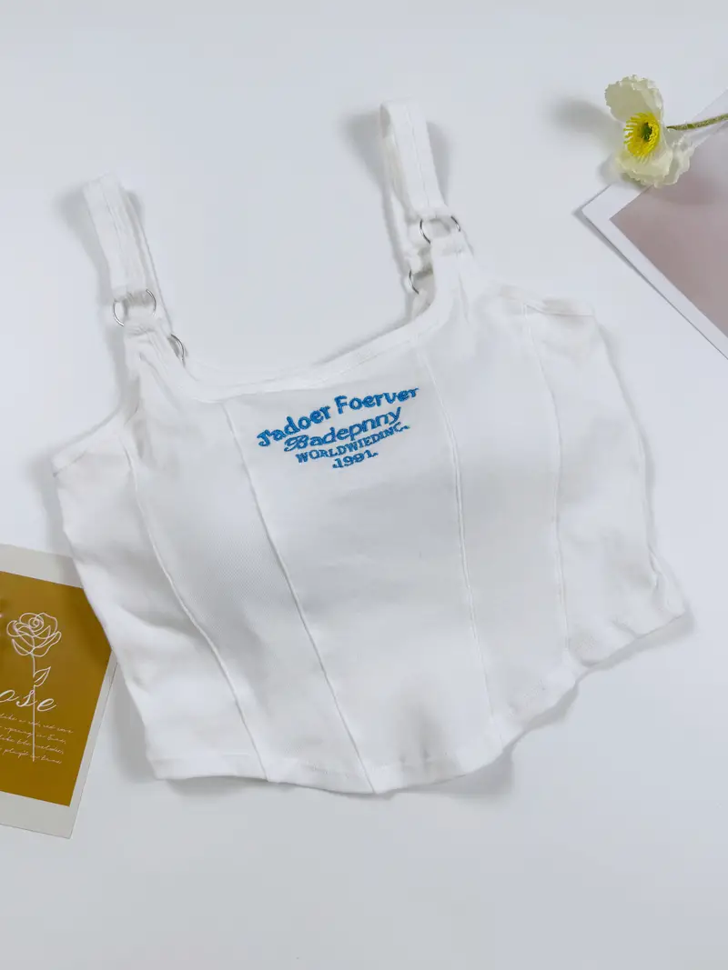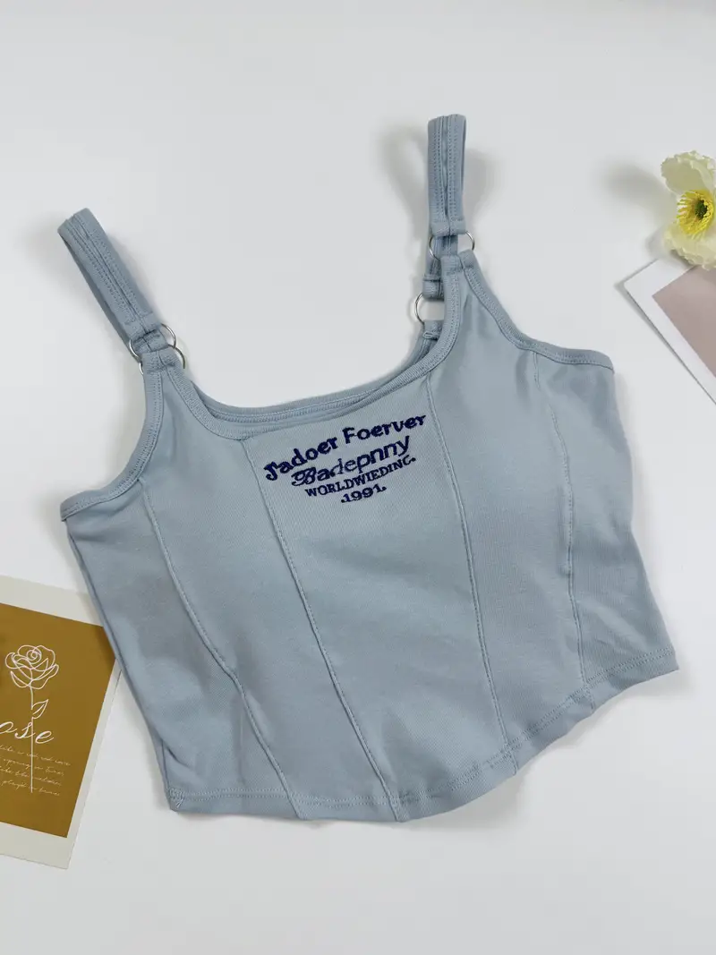 3pcs Girls Letter Embroidered Cami With Chest Pads Casual Fashionable Tops For 13-16 Y