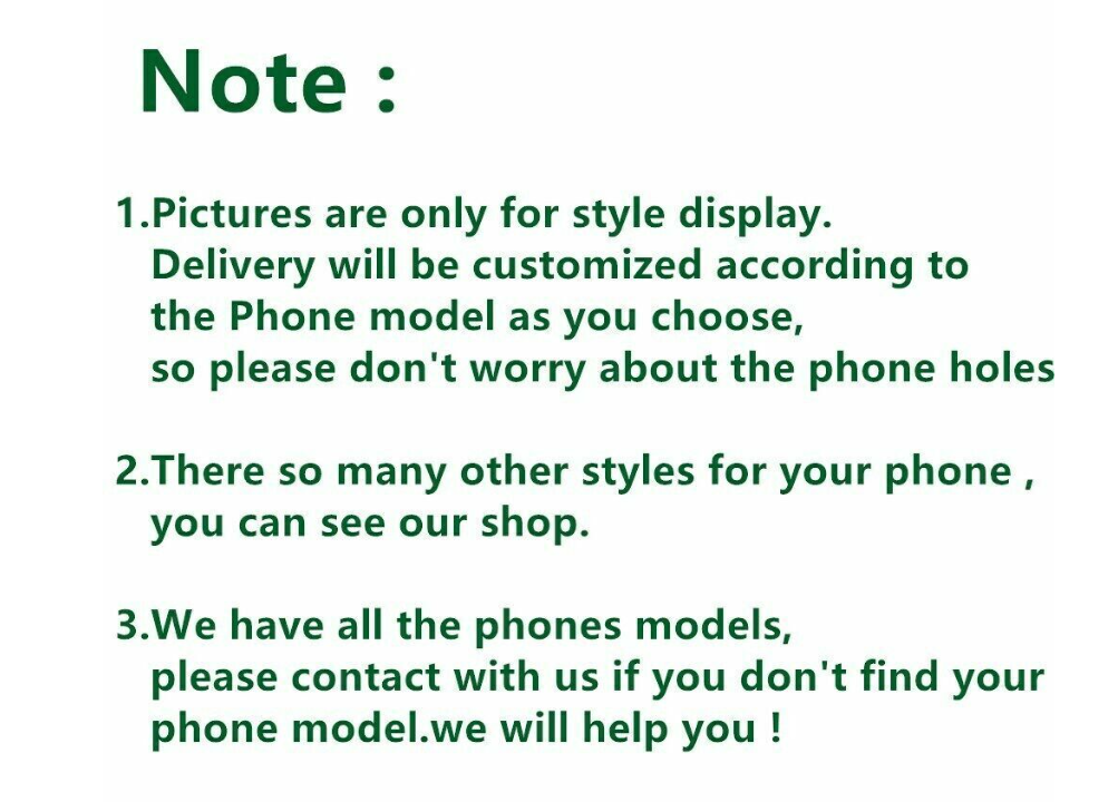 • Pictures are only for styling display. Delivery will be customized according to the model and color selected. Don't worry about the wrong hole position.