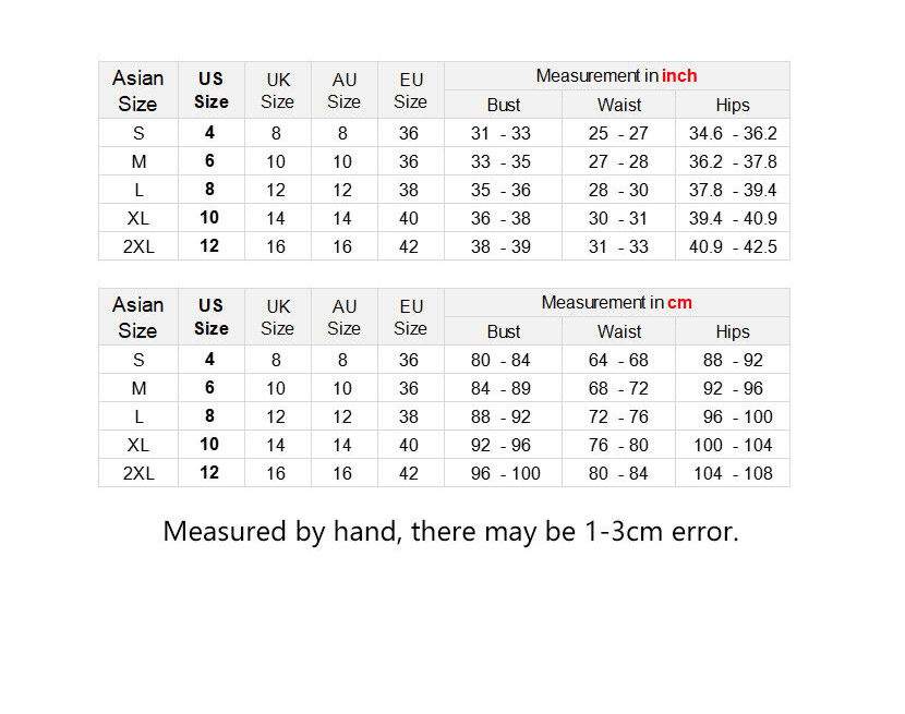 Size: 2XL, Bust: 96-100cm, Waist: 80-84cm, Hips: 104-108cm