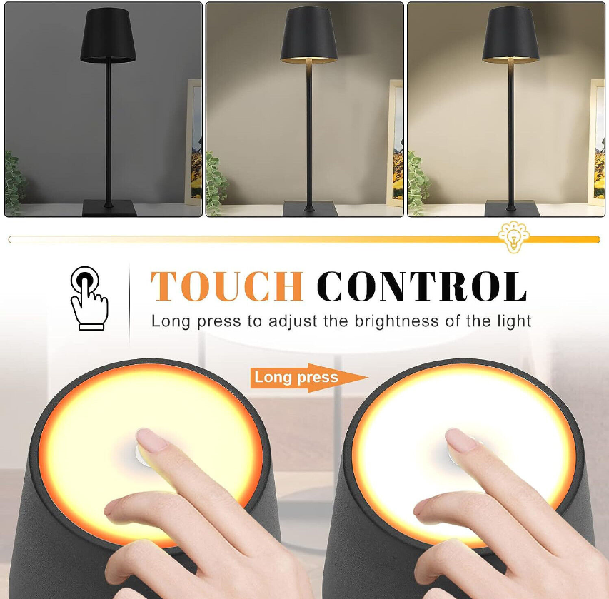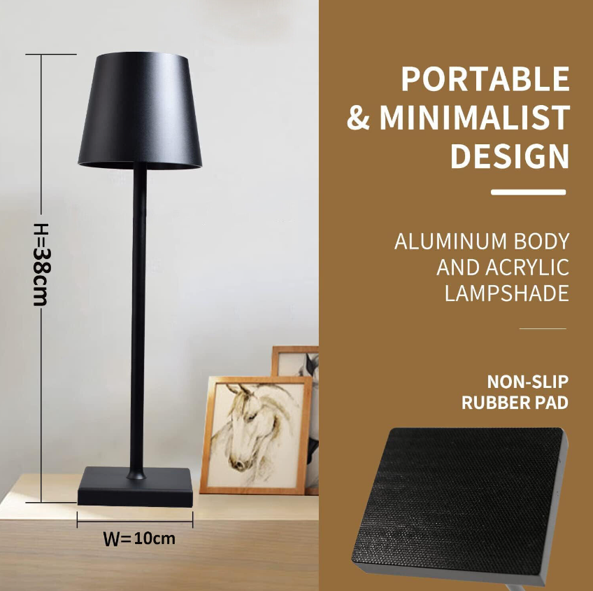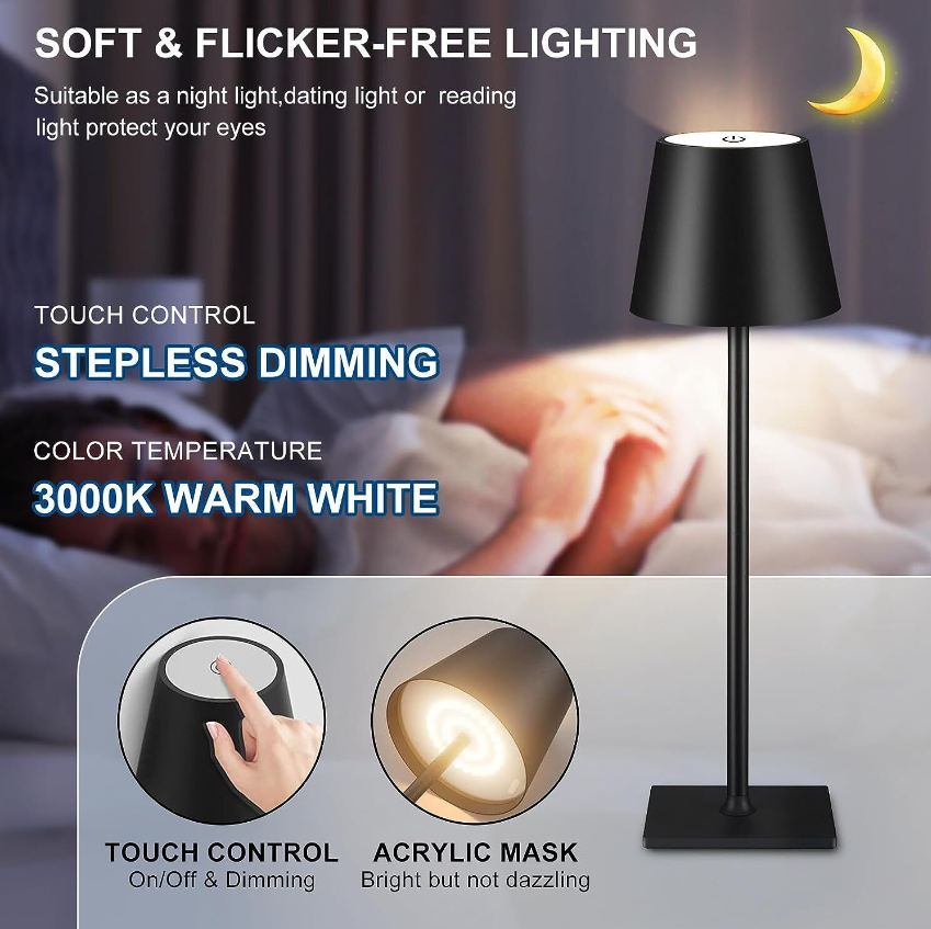 Rechargeable Cordless Table Lamp, Dimmable Lamp, IP54 Waterproof, Long Battery Life Bedside Lamp for Restaurant/Indoor/Outdoor