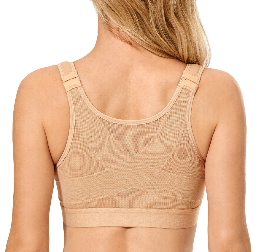 DELIMIRA Women's Front Closure Posture Wireless Back Support Full Coverage Bra