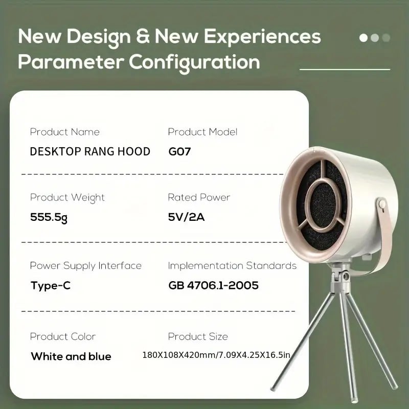 Desktop Range Hood, Mini Range Hood Large Suction, USB Portable Exhaust Fan Detachable 3 Gears, For Indoor BBQ Hot Pot