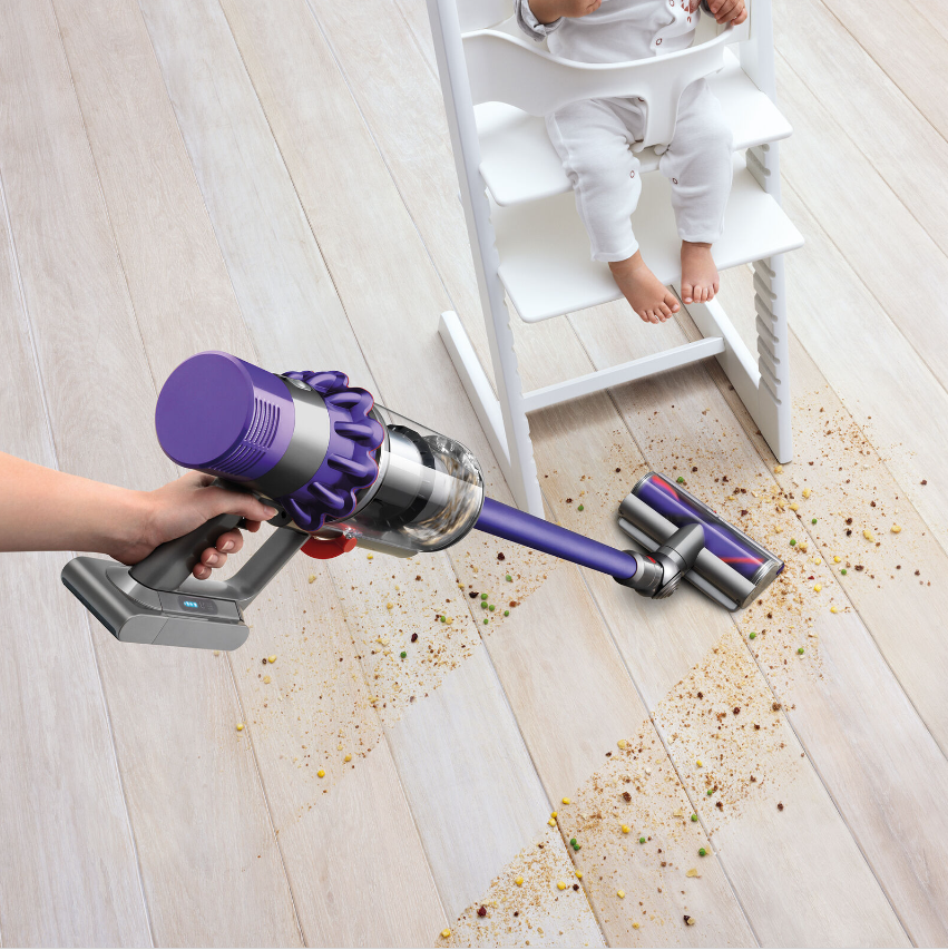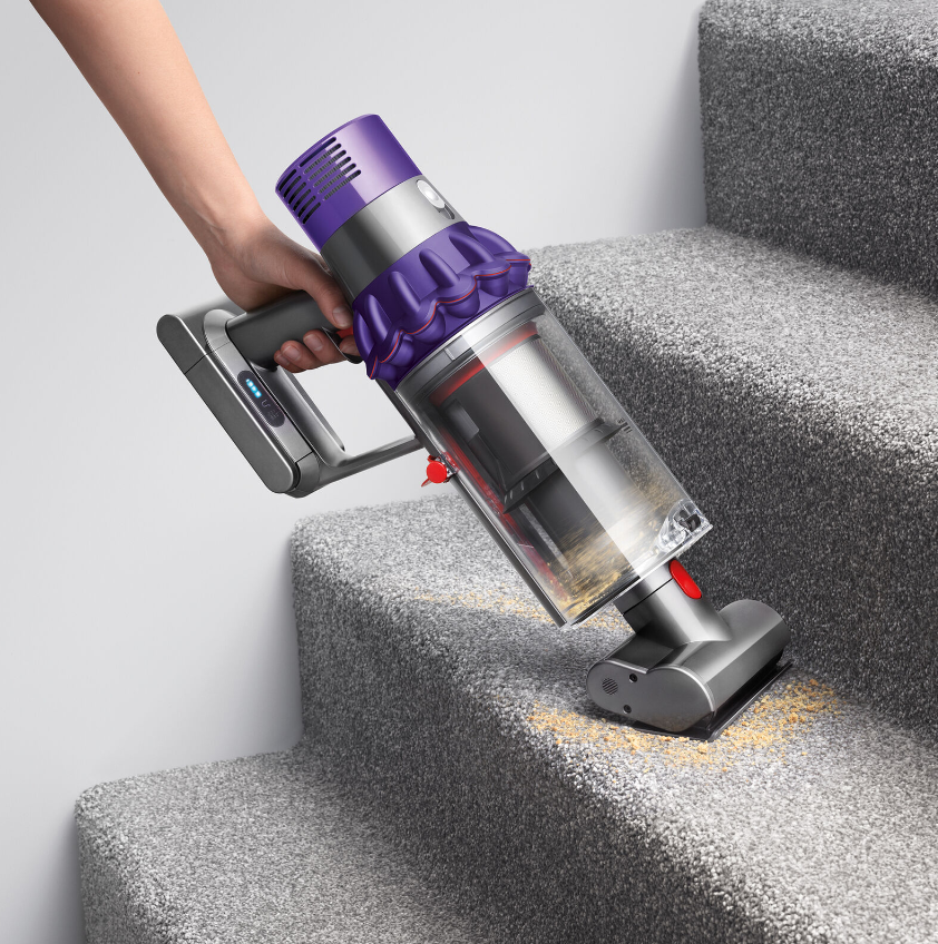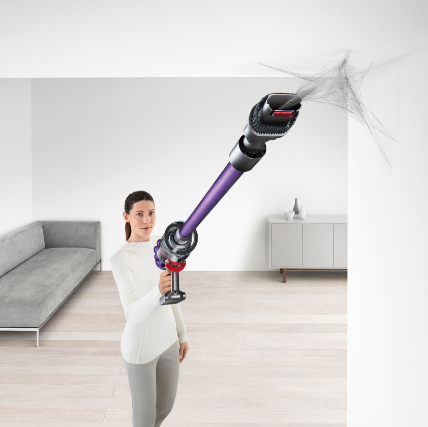 The V10 Animal + has the most powerful suction of any cord-free vacuum. Tested to ASTM F558, against cord-free stick market. Up to 60 minutes' run time when using a non-motorized tool. Lightweight and versatile, to clean right through the home. Instant-release trigger means battery power is only used while it’s cleaning. Requires charging for 3.5 hours minimum before first use. Torque drive cleaner head – our most powerful yet. Up to 20 minutes of fade-free power (in Suction mode II). Drives stiff nylon bristles into carpets to capture deep-down dirt. Powered by the Dyson digital motor V10 and engineered to pick up ground-in dirt and fine dust from hard floors and carpets. Quickly transforms to a handheld vacuum, to clean all around your home and car. Hygienic 'point and shoot' bin emptying. Bin volume 0.2 gallons. 6 month warranty on parts & labor. Designed to deep clean homes with pets. The fully-sealed filtration system traps 99.97% of particles as small as 0.3 microns – expelling cleaner air.