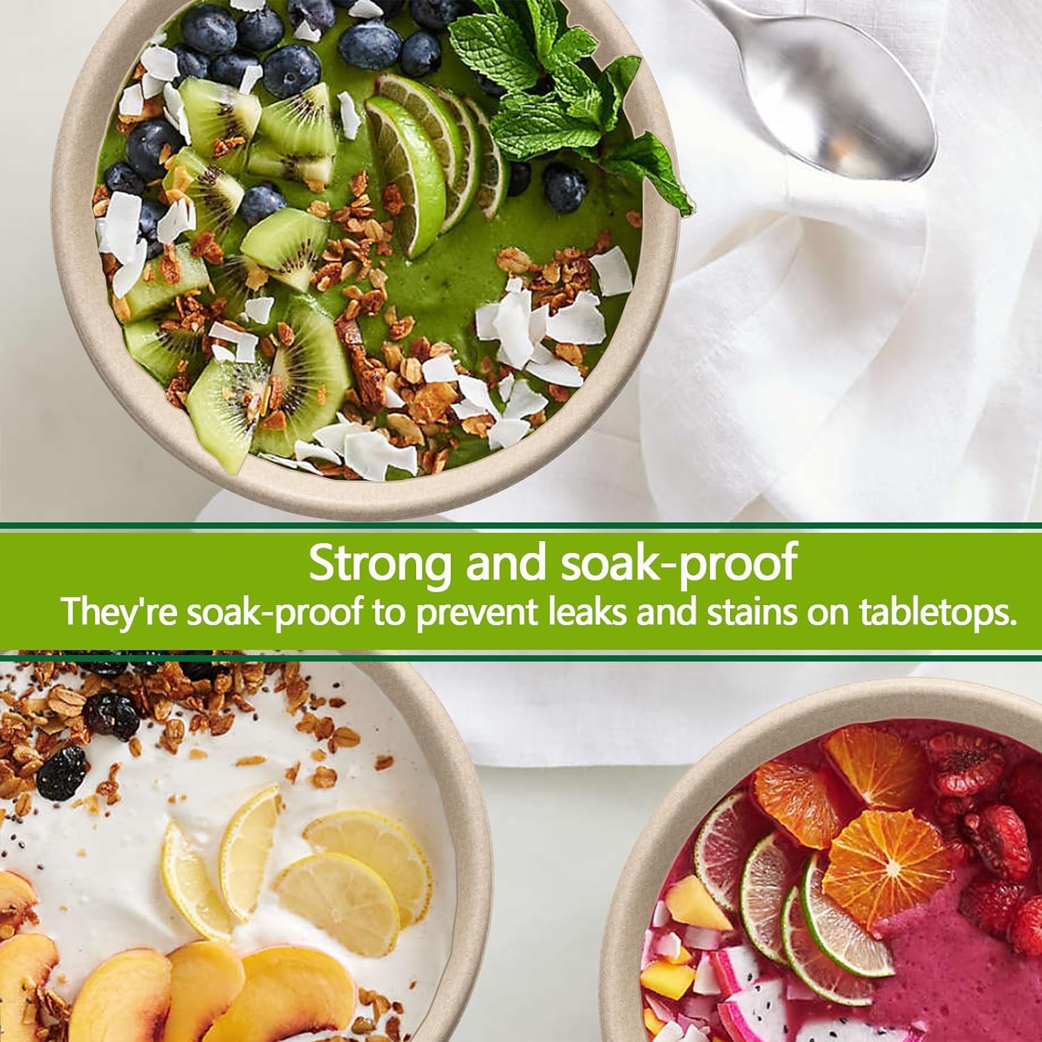 Homestockplus [50 Pack] 24 Oz Disposable Paper Bowls - Heavy Duty Disposable Bowls - Made from Natural Bagasse for Cereal, Rice, French Fries - Convenient and Compostable