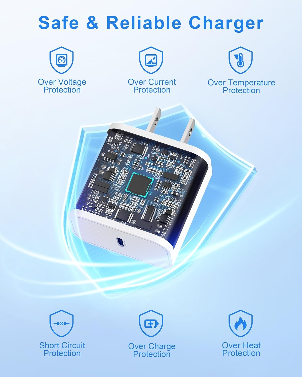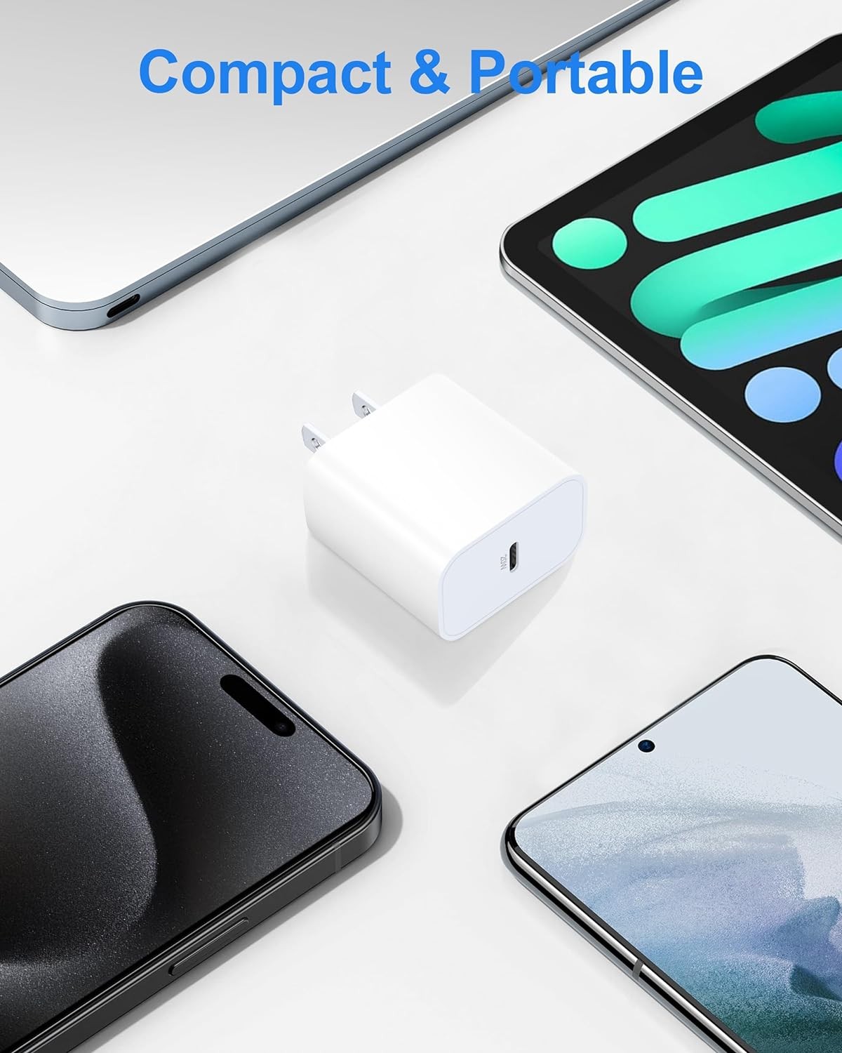 • 【Universal Compatibility】 20W USB C Fast Charger Compatible with most USB-C devices, including for iPhone 15/15 Plus/Pro Max, iPad Pro 12.9 inch 6th/5th/4th/3th (2022/2021/2020/2018), iPad Pro 11 inch 4th/3th/2th/1th (2022/2021/2020/2018), iPad Air 5th (2022), iPad Air 4th (2020), iPad Mini 6th Gen (2021), iPad 10th Generation 10.9 inch (2022); Also compatible with Google Pixel 7/6/5/4/3/2/XL, and more USB C android phones.