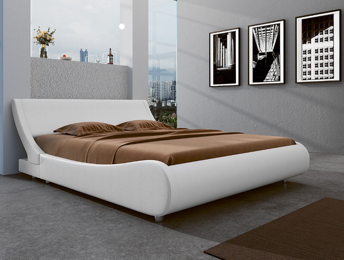 【Bedroom Refresh】 Wave-like silhouette of Our low profile bed is one of a kind addition to any contemporary bedroom. This upholstered platform bed is fully wrapped in soft PU leather for ultimate comfort and looks, and features a slatted base.