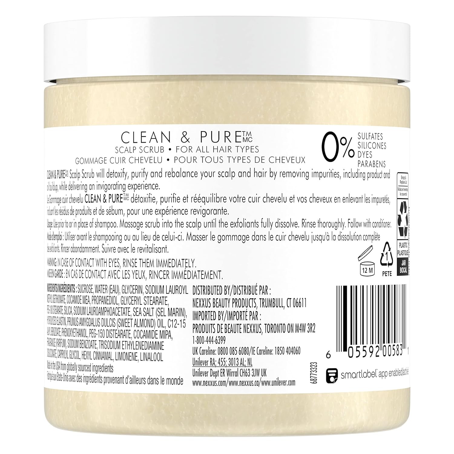 Want deeply nourished hair that’s soft, smooth and strong? Discover Nexxus Clean & Pure Scrub Hair Treatment. It detoxifies and purifies your scalp and hair while replenishing its vital nutrients. Inspired by nature, the Nexxus Clean & Pure hair care collection is packed with the power to purify and revive your hair. Made with no paraben, dye or silicone, this hair treatment is gentle on your hair and skin. Salon-crafted with our exclusive ProteinFusion blend of elastin protein and marine minerals, this purifying scrub helps replenish, repair and reawaken hair and scalp. Repairing hair is a multi-step process that includes a combination of hair products. This scrub is a vital part of the regimen for cleansing and exfoliating the scalp to remove build-up. Use once a week or as desired with Nexxus Clean & Pure Moisture Shampoo, Moisture Conditioner, Lightweight Foam Leave-In Conditioner, and Nourishing Detox 5in1 Invisible Hair Oil. Simply place a dollop of the scrub into your palm. Gently work hair product into hands and then massage into a moist scalp until the particles dissolve into a light lather. Mix in a bit of water to spread evenly through scalp and hair. Rinse thoroughly before applying Nexxus Clean and Pure Sulfate-Free Shampoo Scalp Scrub For All Hair Types Hair Treatment Detox Shampoo Hair Care. Trust your hair and scalp to Nexxus.