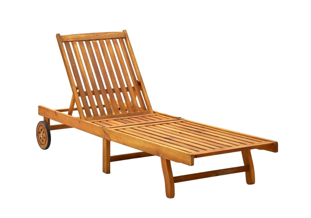 Relax and take a load off in your garden or patio on this comfortable wooden sun lounger! You can spend a relaxing afternoon in your own outdoor space. It is perfect for a pool, balcony, garden, etc. This outdoor sun lounger is made of solid acacia wood, making it sturdy and stable. The backrest and footrest are adjustable, and you can lock the lounger into the desired position. This garden sun lounger can be easily moved around the house with equipped 2 wheels. The sunbed features a convenient pull-out table, to place your phone, sunglasses, drink and other small items. The cushion adds extra comfort for you while lounging. Each cushion features two sets of ropes so that you can fix it on the sun lounger tightly.