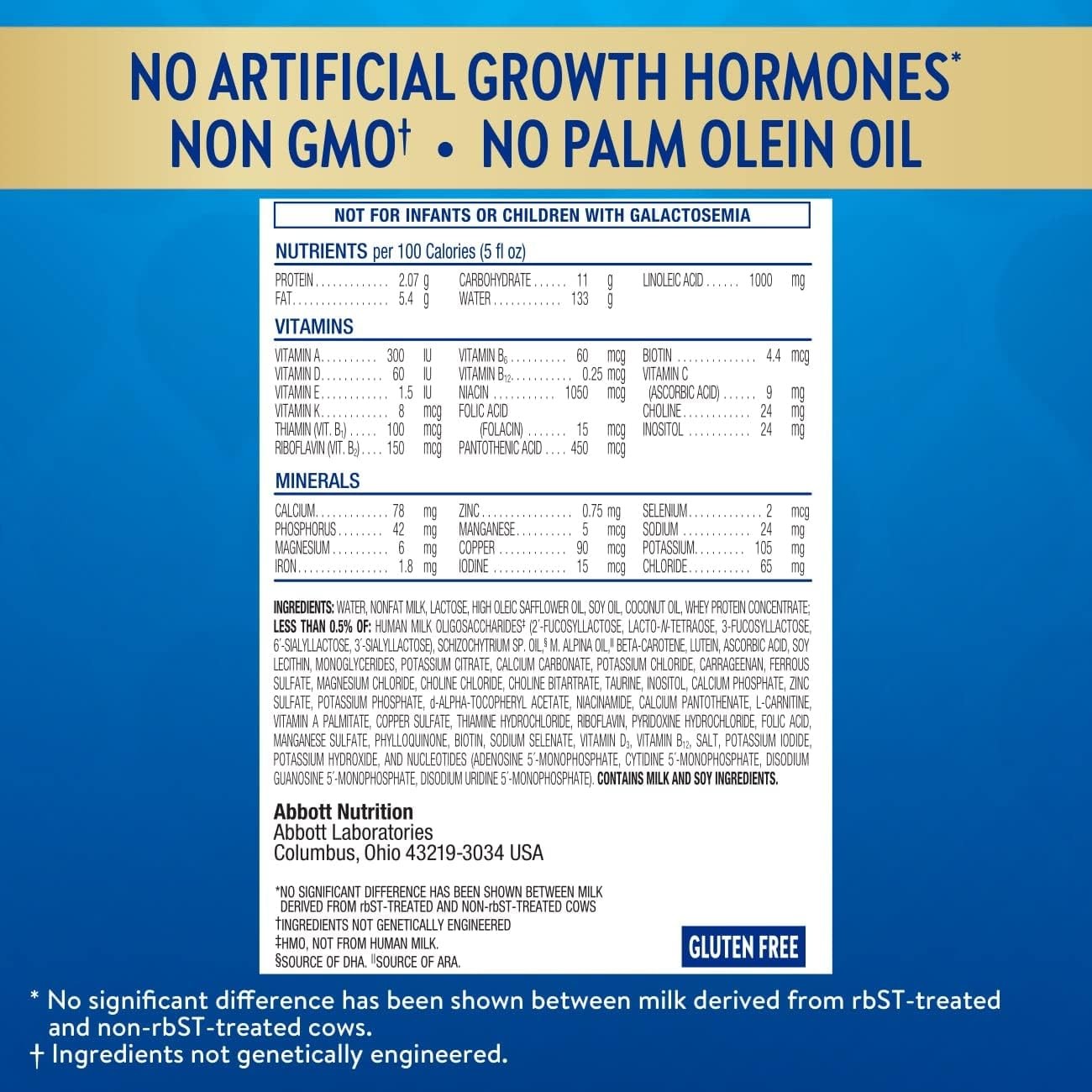 • NO ARTIFICIAL GROWTH HORMONES : Similac was the first leading infant formula brand with no artificial growth hormones. Similac Advance is also kosher and halal