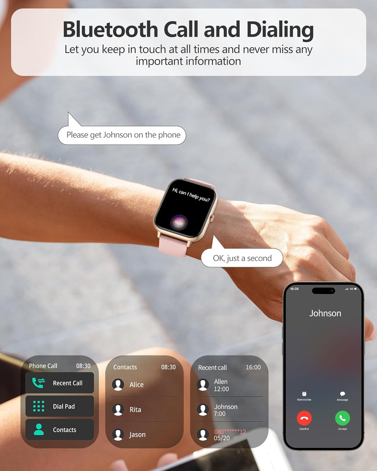 This smart watch for men/women is not only a fitness tracker and sports watch, it also adds Bluetooth calling & Ai voice assistant functions to make your life more convenient.