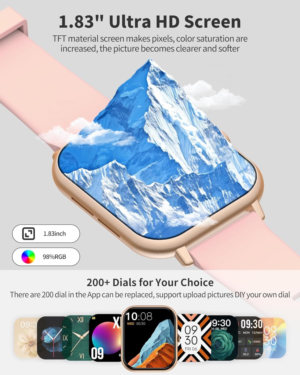 Smart Watch for Men Women(Answer/Make Call),1.83" Fitness Tracker with Blood Pressure Heart Rate Monitor,Sleep Tracker,Pedometer,123 Sport Modes, IP68 Waterproof Smartwatches for iPhone&Android