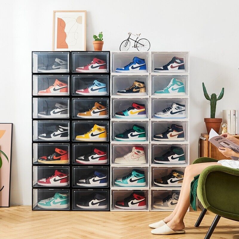 Stackable Magnetic Shoe Storage Box Organizer Sneaker Case Side/Front Container