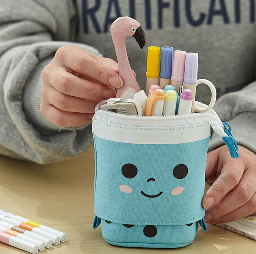 Stand Up Pencil Holder Stationery Pouch Bag Telescopic Pencil Case Pen Box Cute