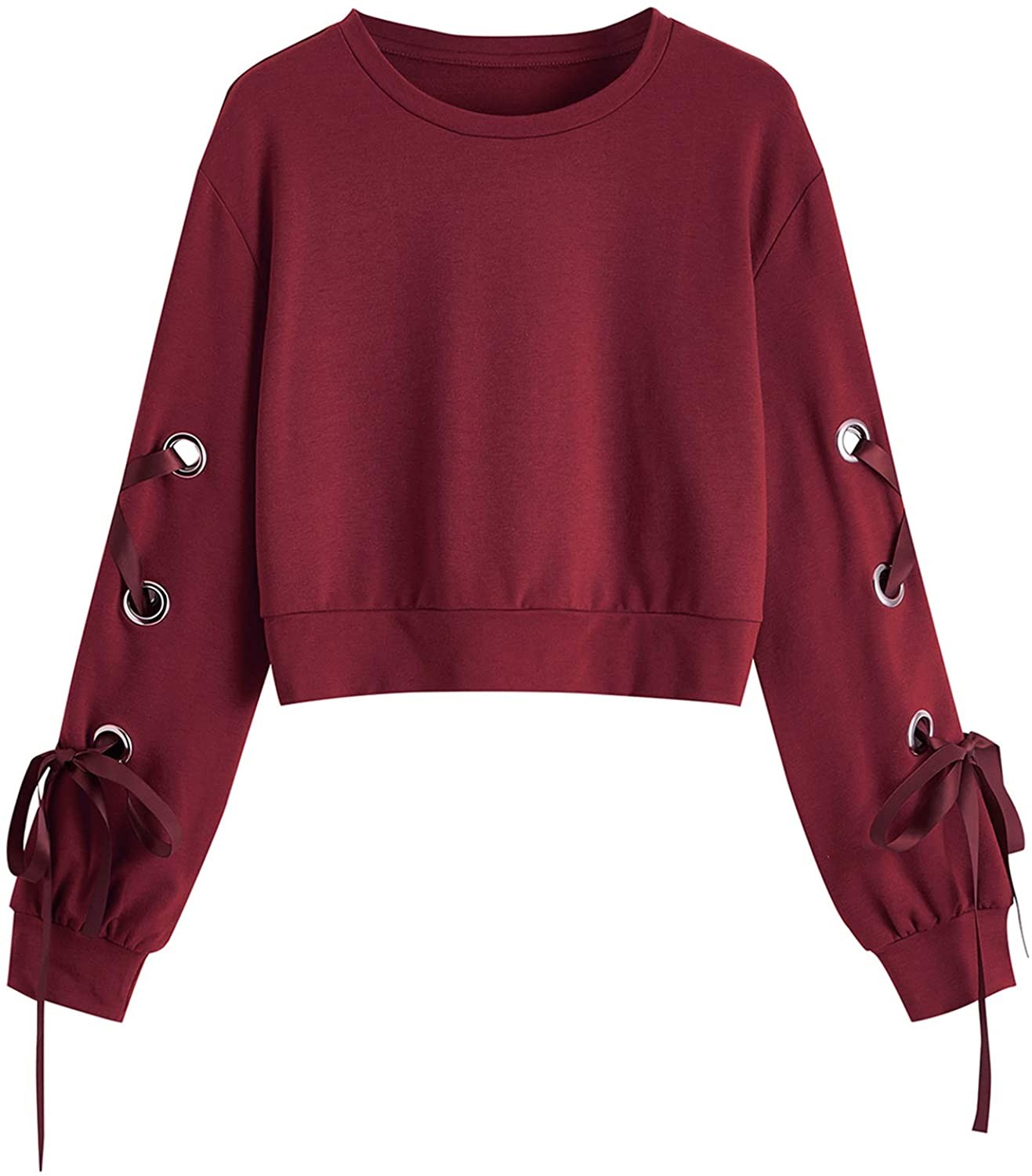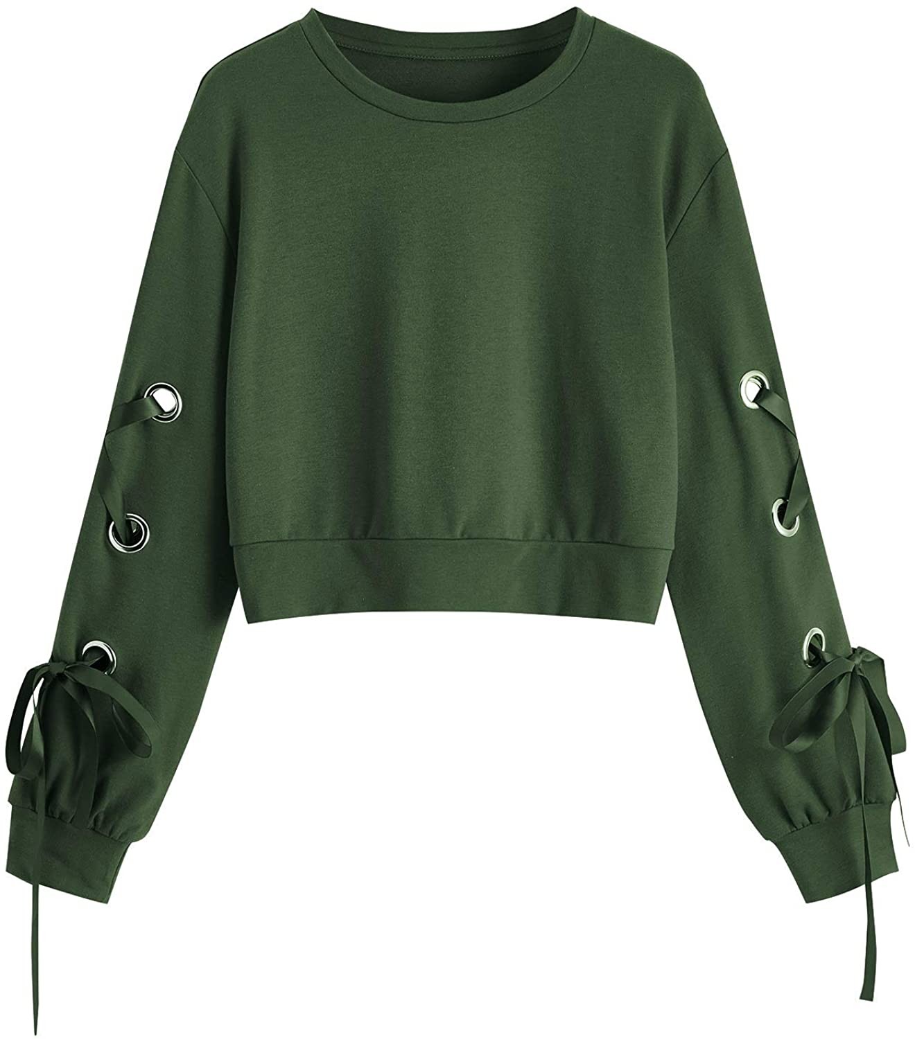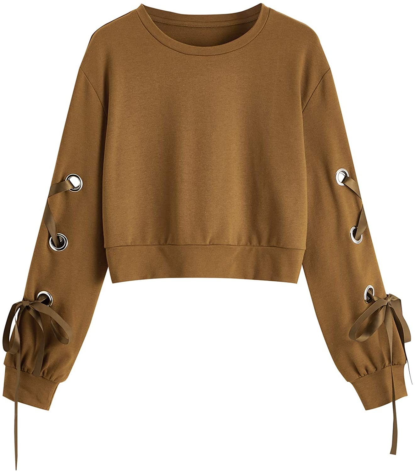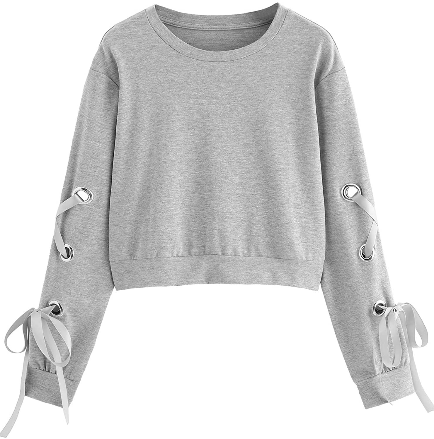 SweatyRocks Women's Casual Lace Up Long Sleeve Pullover Crop Top Sweatshirt