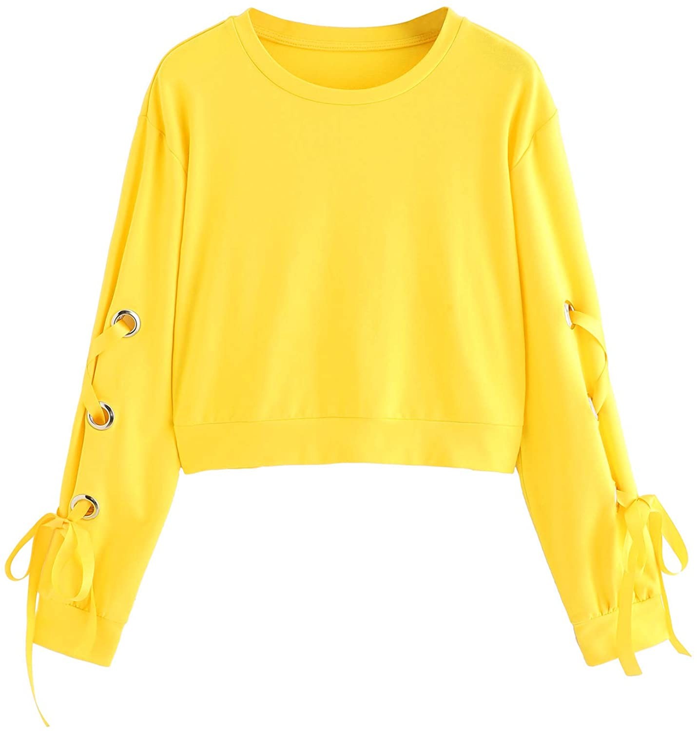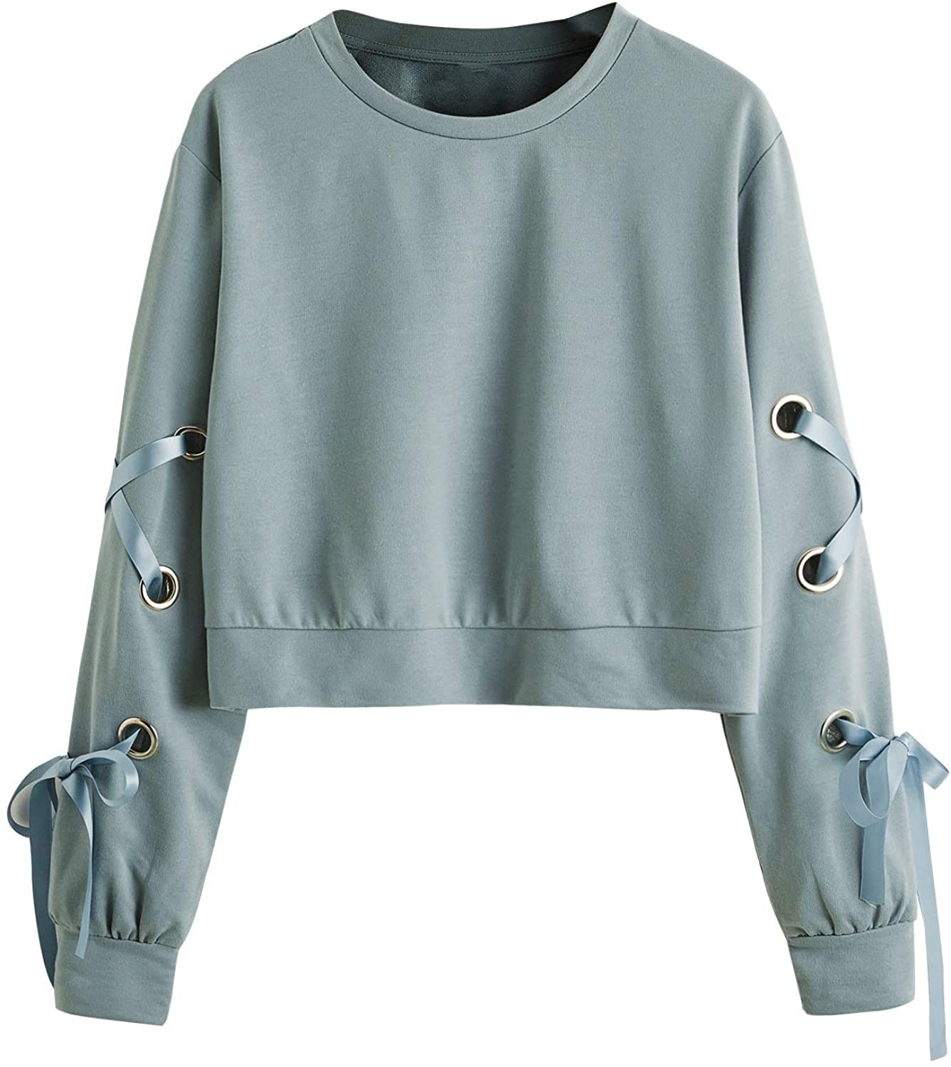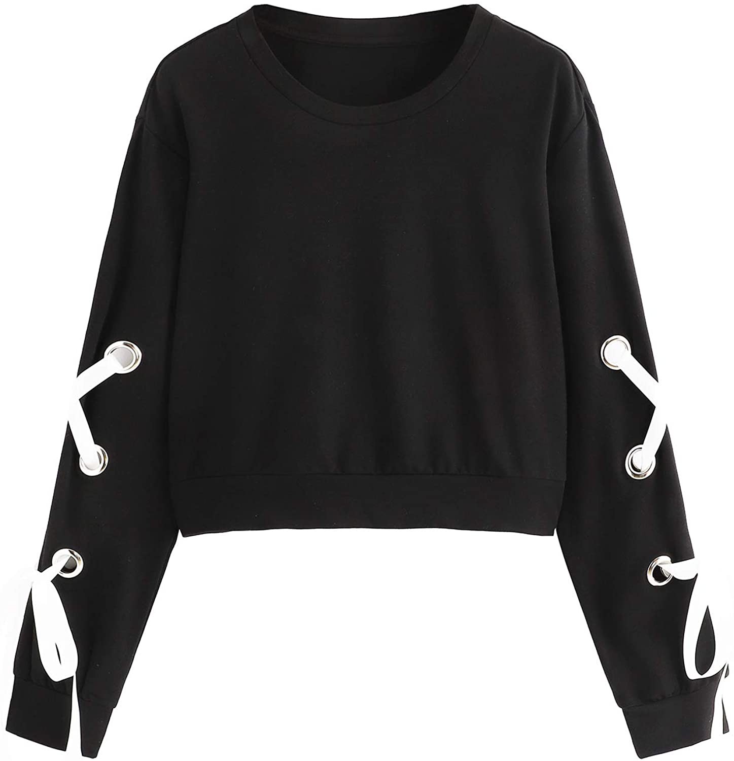 SweatyRocks Women's Casual Lace Up Long Sleeve Pullover Crop Top Sweatshirt