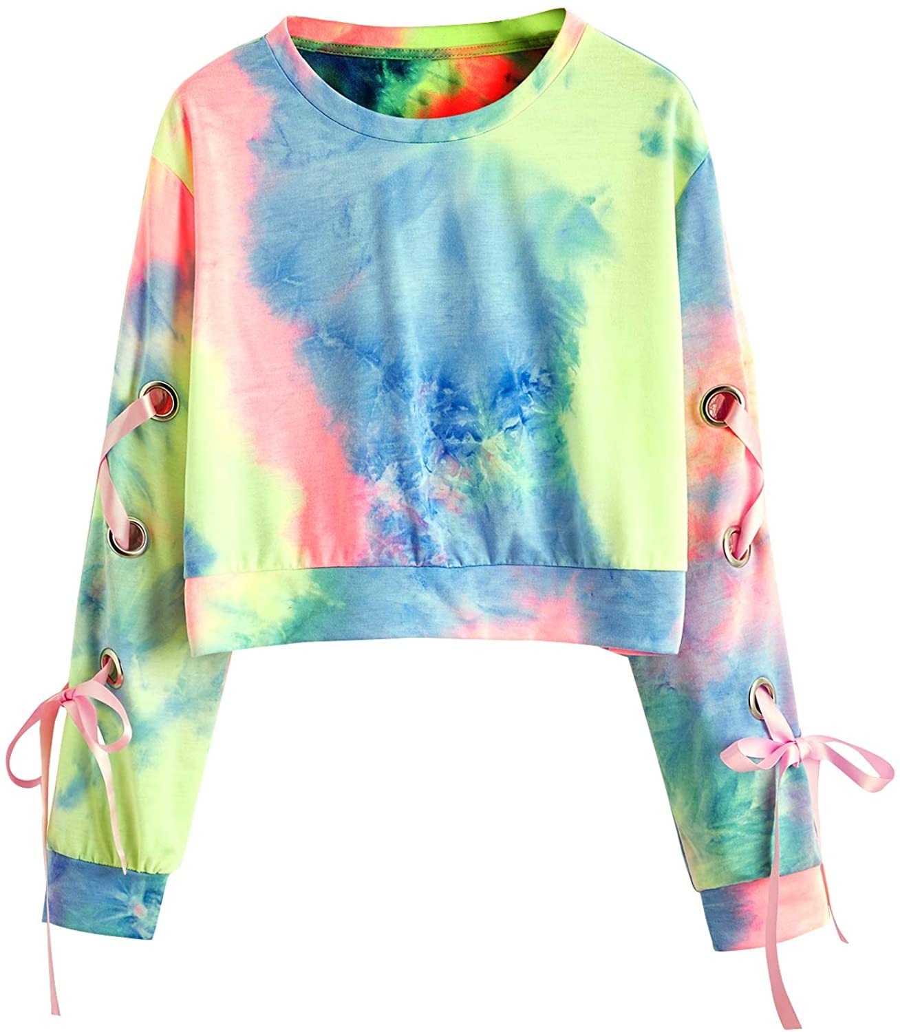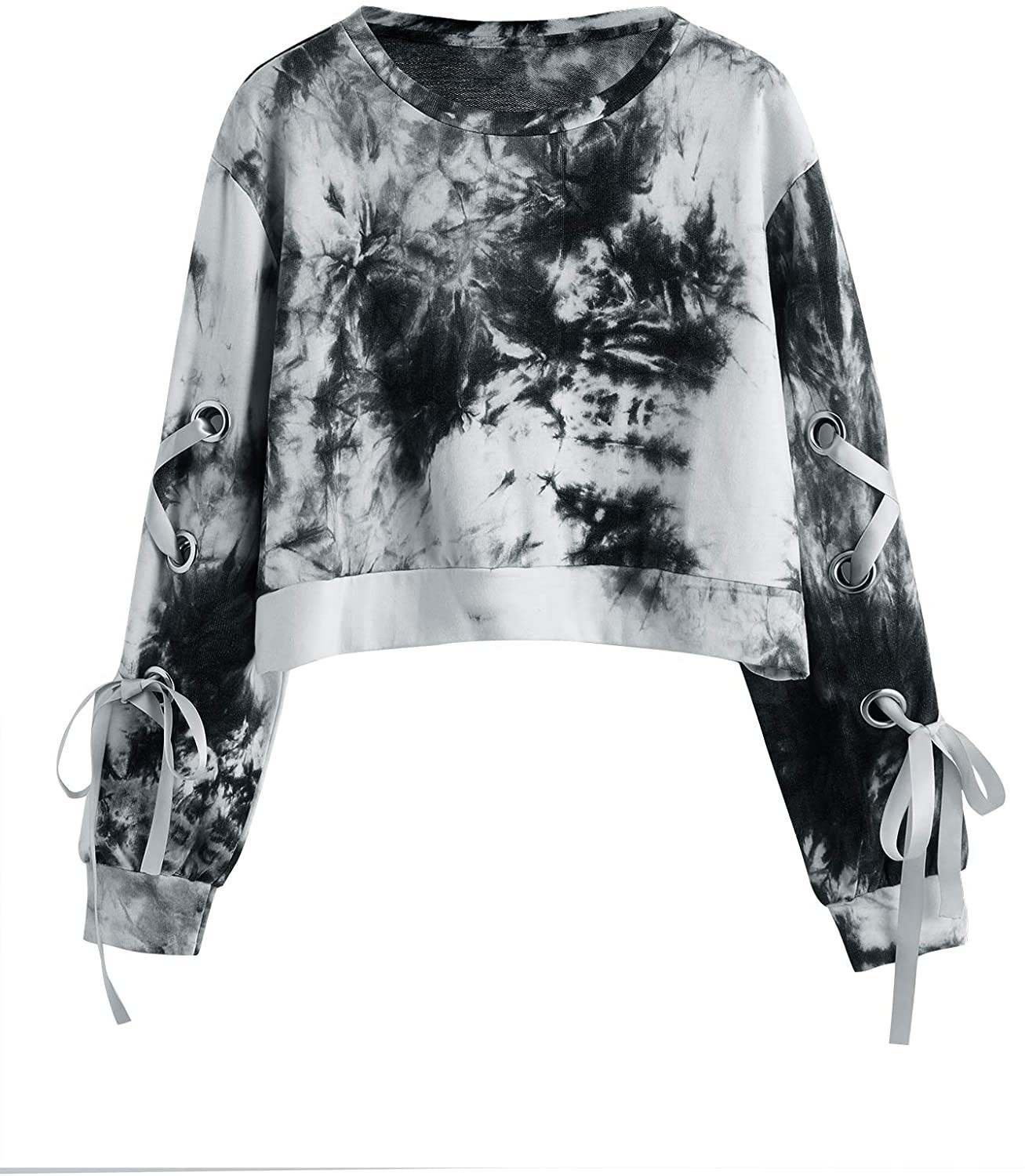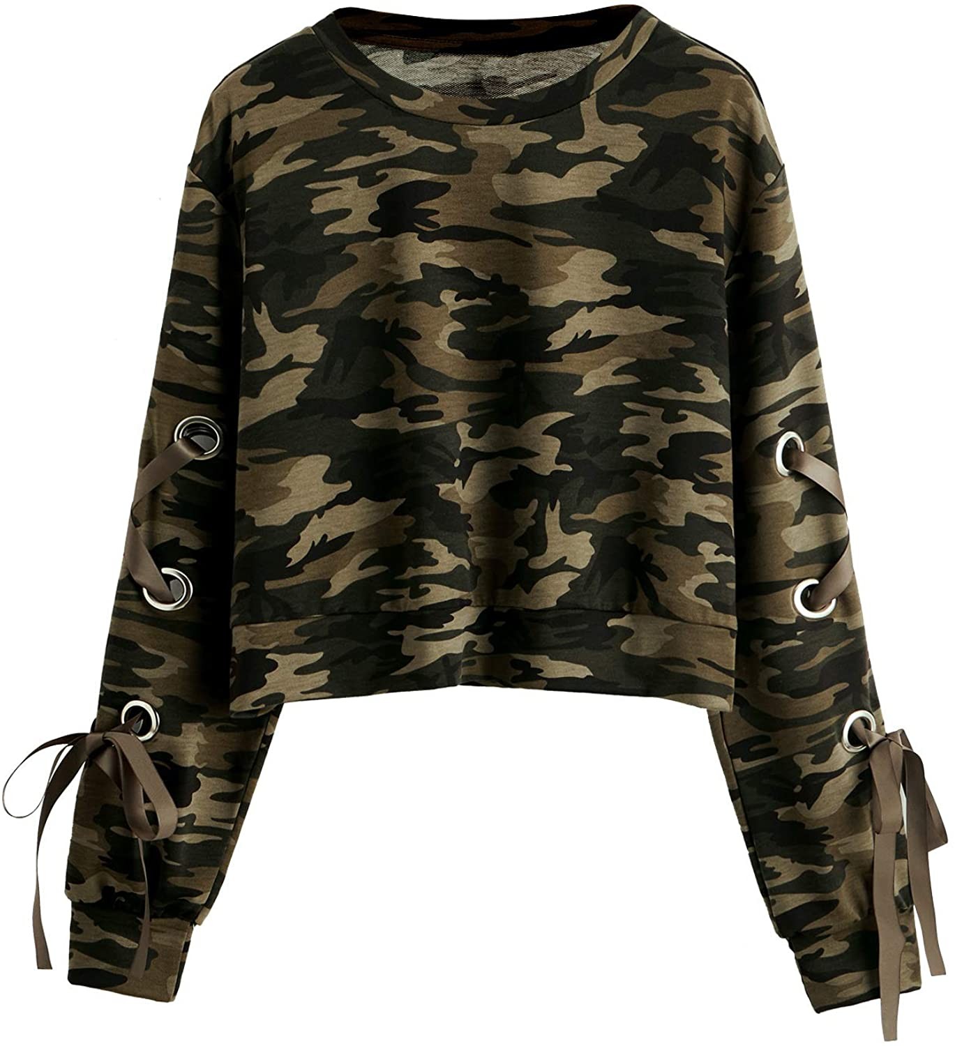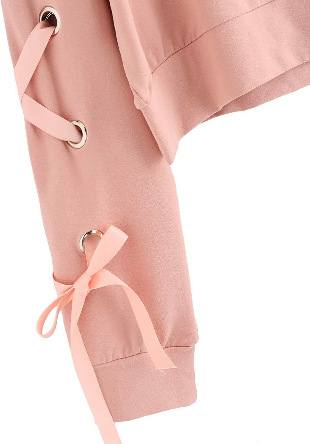 SweatyRocks Women's Casual Lace Up Long Sleeve Pullover Crop Top Sweatshirt