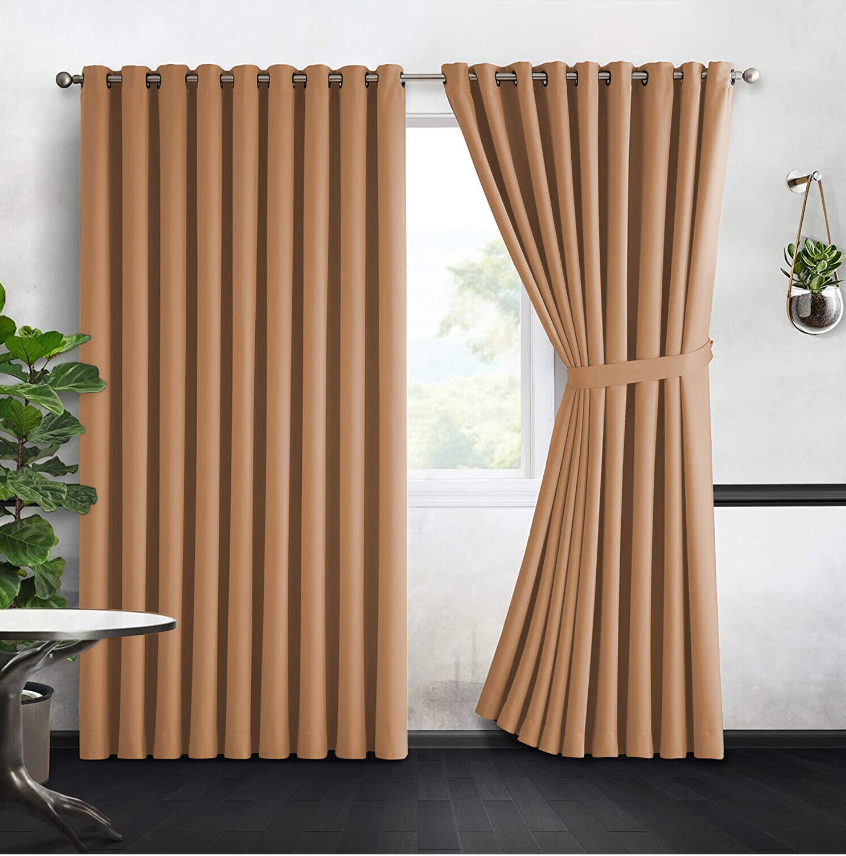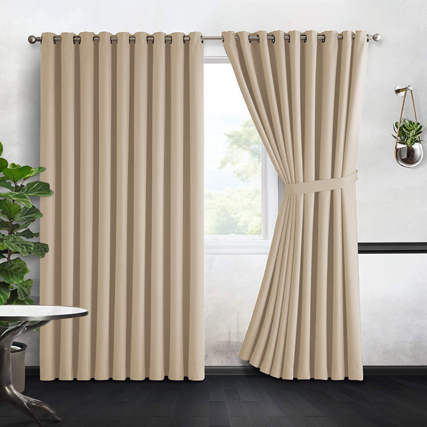 Thermal Blackout Eyelet and Pencil Pleat Door Window Curtains with two Tiebacks