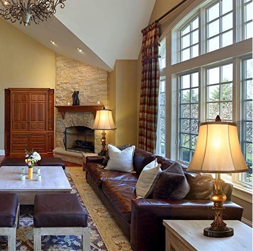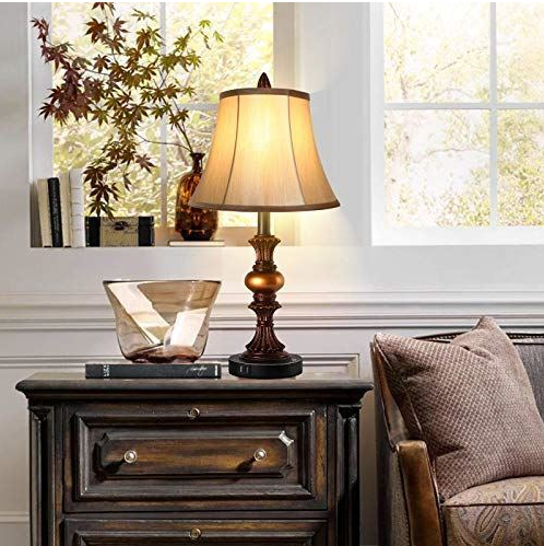 • Traditional table lamp: designed in a vintage style, the bronze finish of the bedside lamp is perfectly paired with the light gold bell shape lampshade to create a timeless look.The traditional design is modernized with a rustic feel, making this the perfect finishing touch to any style of decor. Perfect for the entryway, living room, or office area. Use both lamps in one room, or divide them up for use in several rooms in your home.