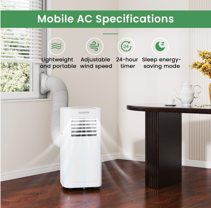POWERFUL & EFFICIENT COOL AIR CONDITIONER - This Waykar air conditioner features 9,000 BTU cooling power to reduce temperatures between 61°F-88°F for rooms 250-400 sq.ft. It’s the ideal small air conditioner for living rooms, bedrooms, apartments, dorms, offices, cabins, and more.