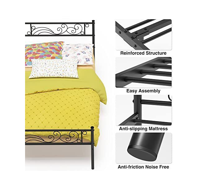 Heavy Duty Bed Frame Capacity: Maximum 400lbs. Strong Steel Frame Structure with Steel Slat support for mattress longevity.
