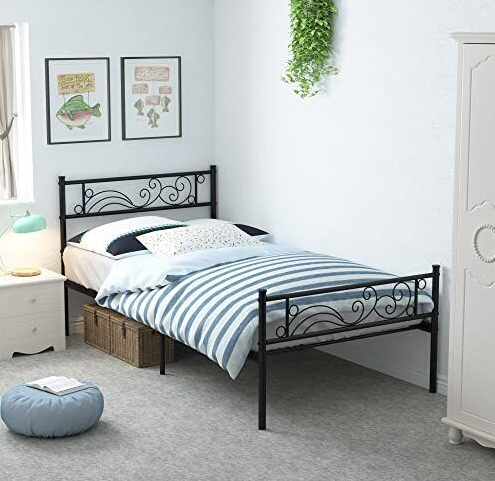 Weehom Metal Twin Bed Platform Frame Heavy Duty Steel Slat Under Bed Storage