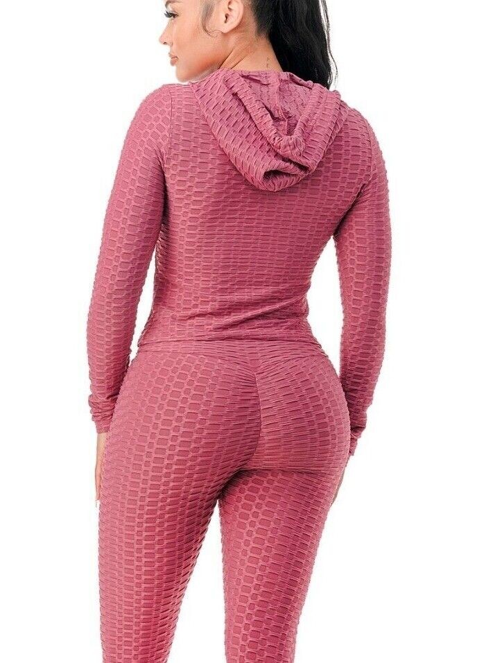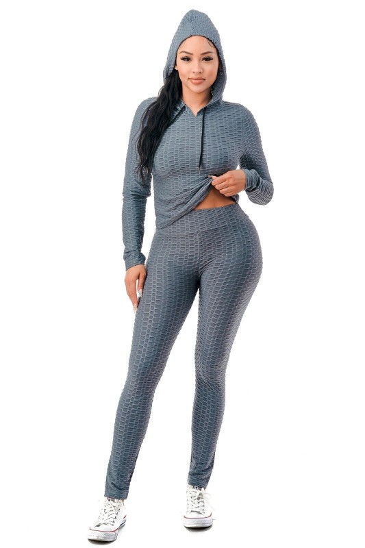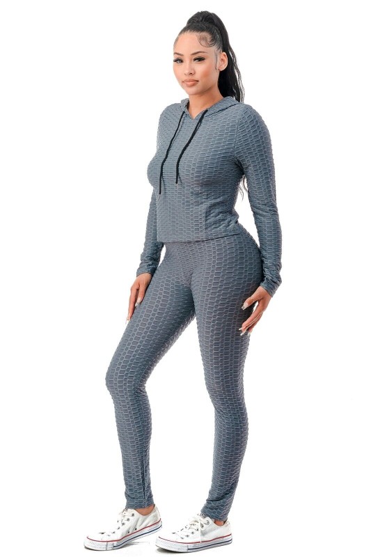 Women Texture 2 Piece Outfit Hoodie Top and Yoga Leggings Pants Workout Set