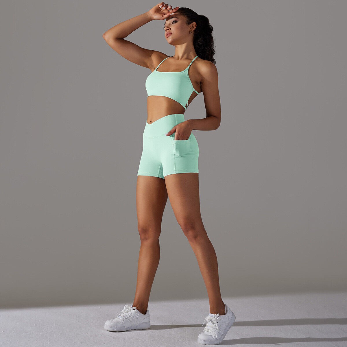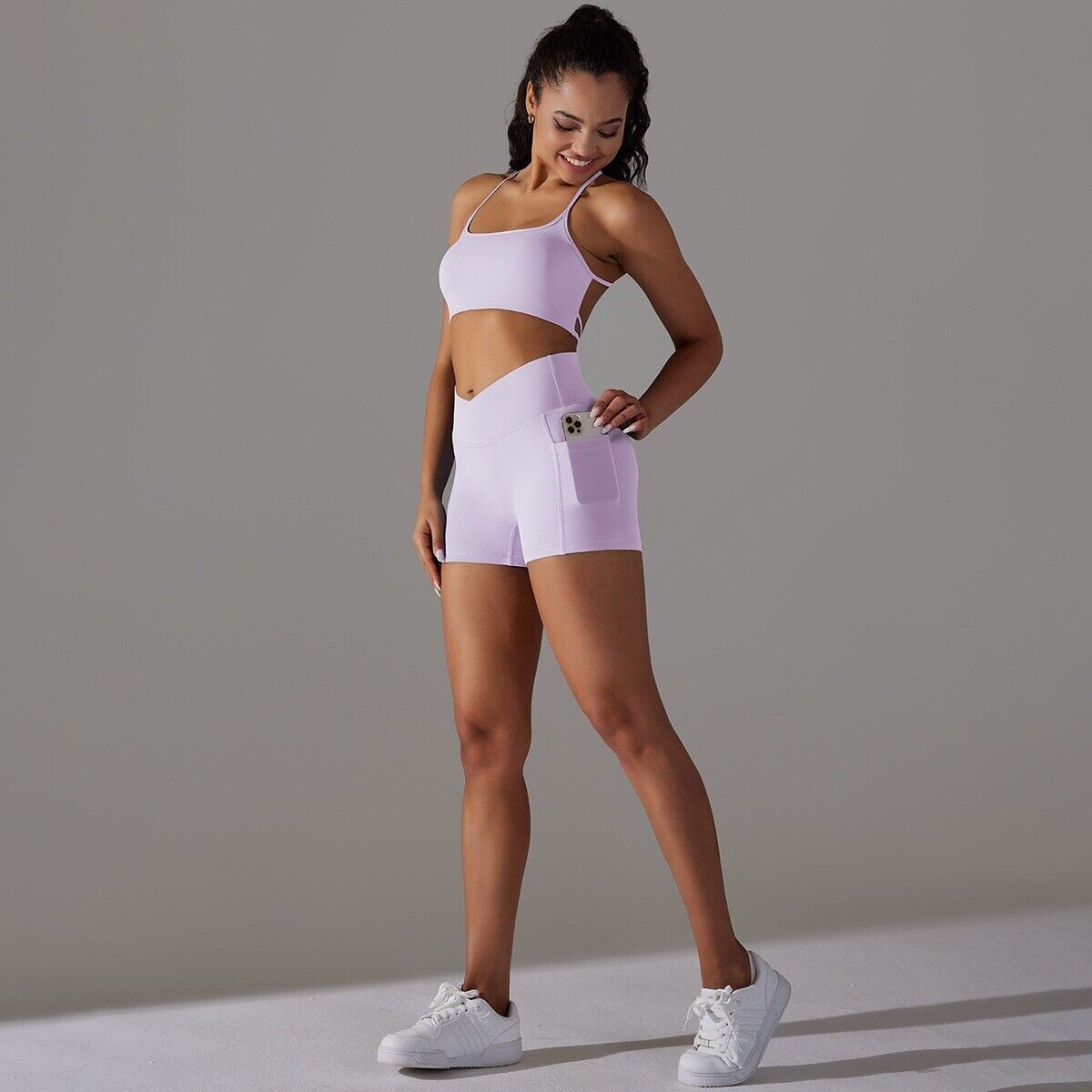 Women's Workout Sets 2 Piece Yoga Outfits Yoga Shorts and Sports Bra Gym Clothes