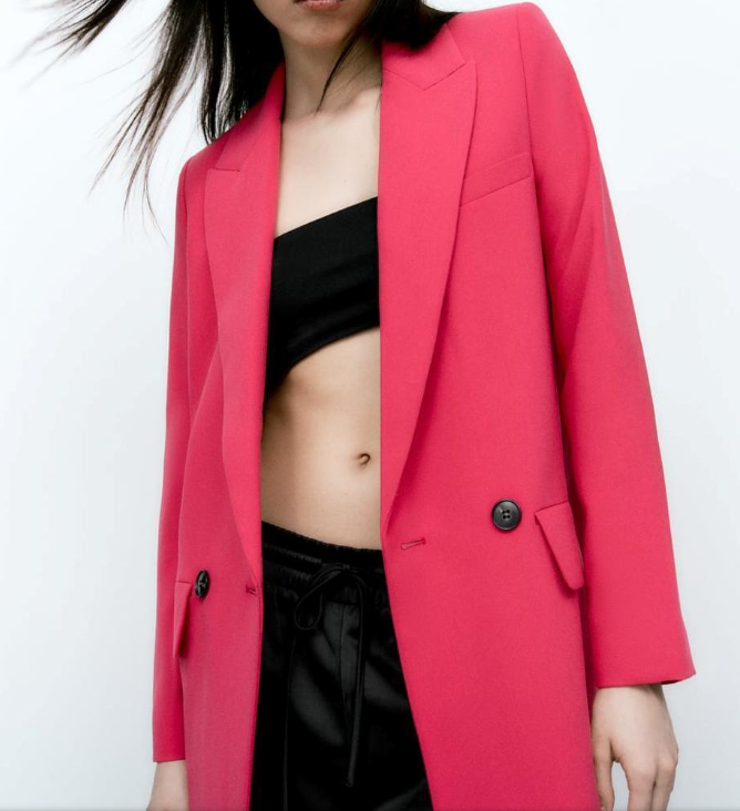 ZARA PINK FUCHSIA DOUBLE-BREASTED LAPEL COLLAR MUSCULINE OVERSIZED LONG BLAZER